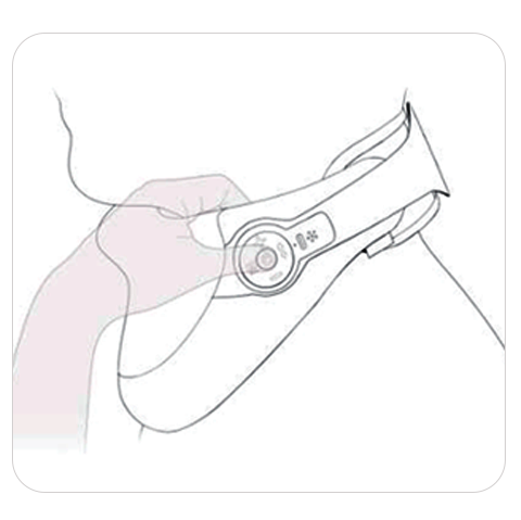 Wrap the device around your neck and secure the Velcro on the other end.Adjust for comfort.