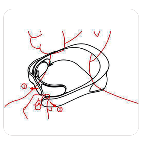Rest your left hand's four fingers between the cervical spine and the device, while pressing the controller buttons with your thumb.