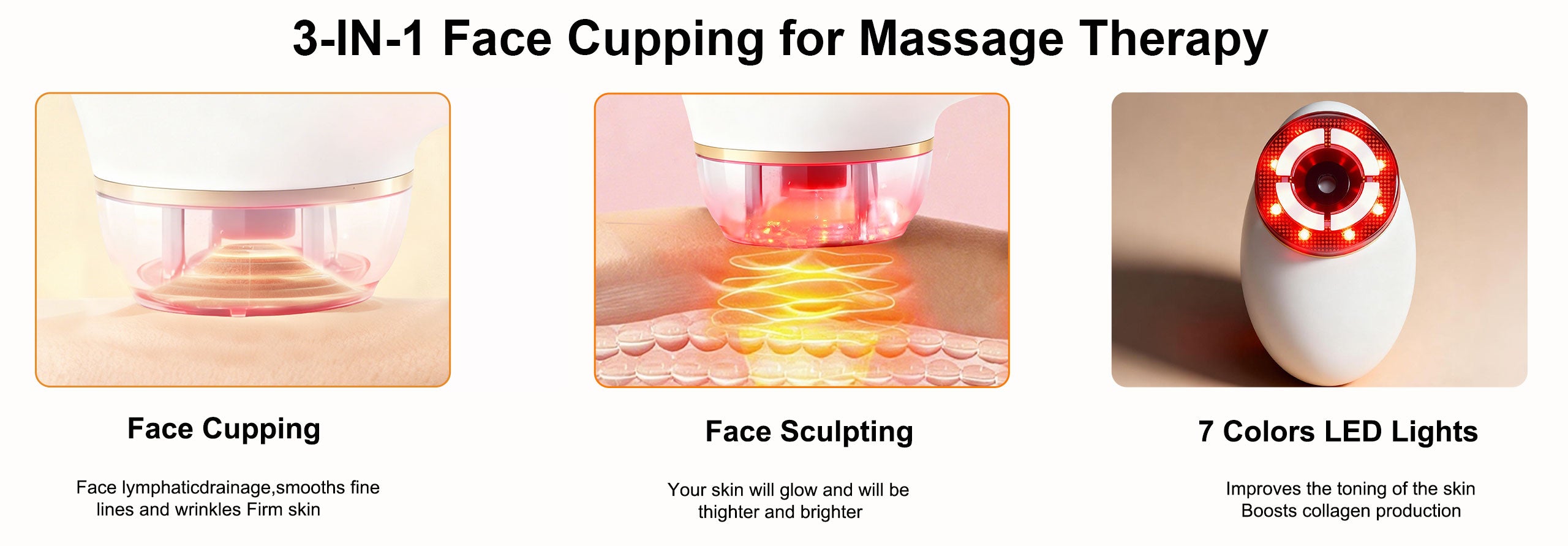 3-in-1Facial Device--This isn't just a face cupping tool; it's a complete facial massager.