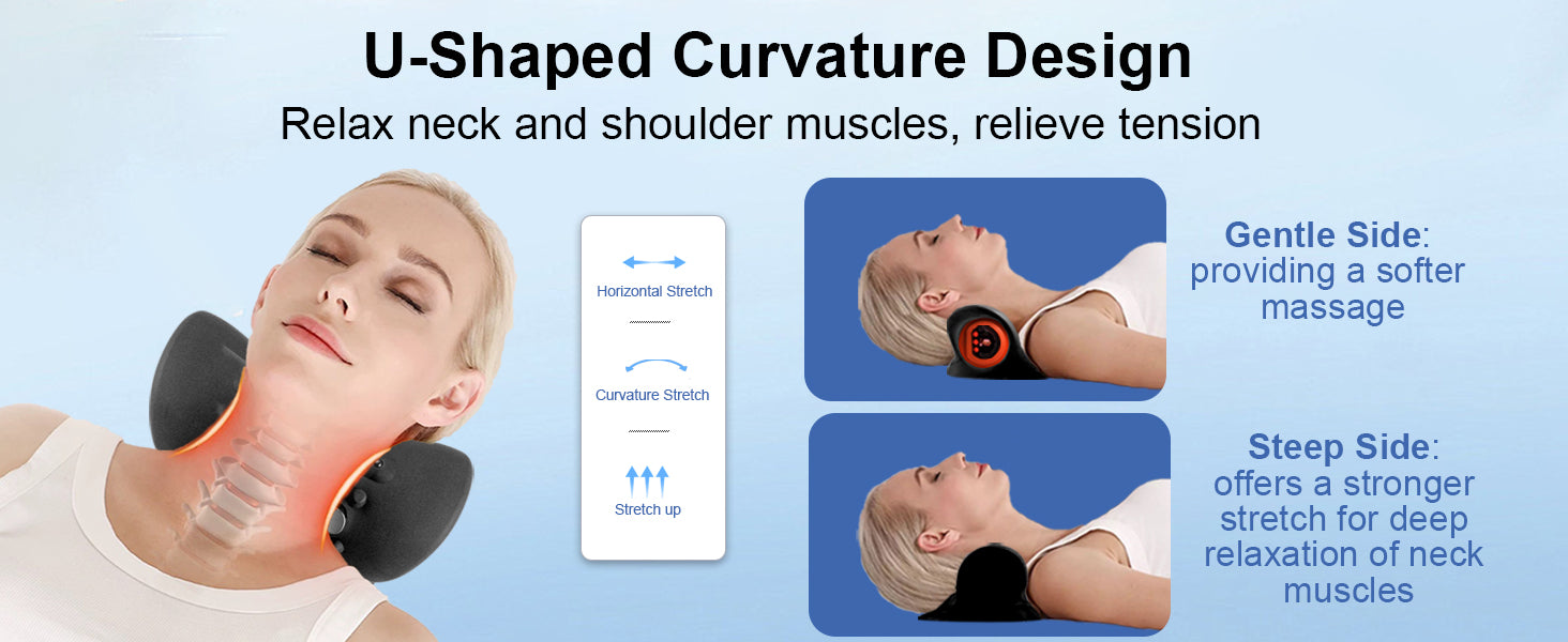 Just 15 minutes a day with this neck stretcher can help relieve neck pain. This neck massager is perfect for people who often look down, sit still for along time, improper sitting posture. The neck traction device reduces neck pressure and discomfort, helping to restore the natural curve of your neck